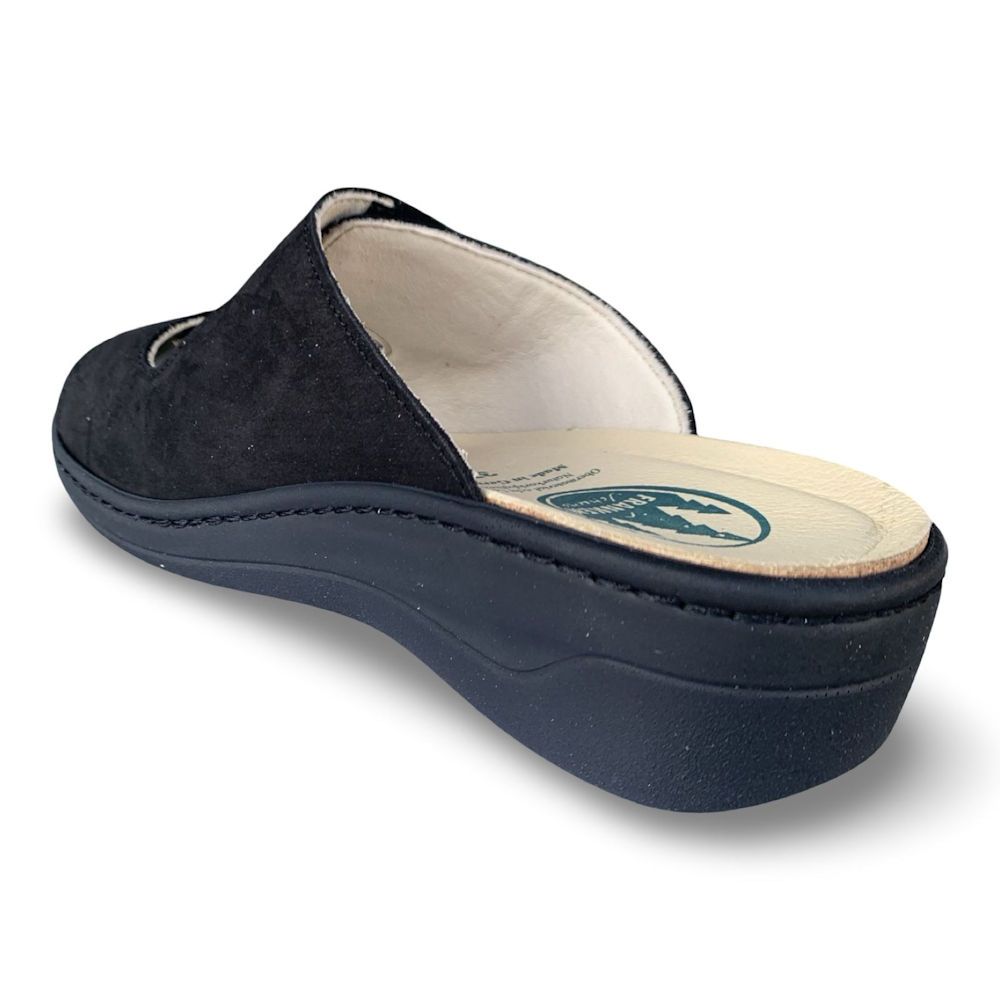 Deze slipper, artikel 30051 zwart van franken heeft een standaard breedte en is geschikt voor steunzolen. Wij versturen ze gratis vanuit onze schoenwinkel in Dilsen-Stokkem naar België Nederland en Duitsland.