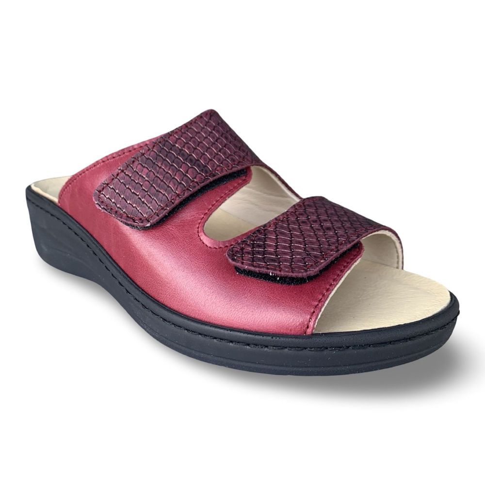 Deze slipper, artikel 30052 bordo van franken heeft een standaard breedte en is geschikt voor steunzolen. Wij versturen ze gratis vanuit onze schoenwinkel in Dilsen-Stokkem naar België Nederland en Duitsland.